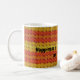 Striped afghan worked in crochet. Shell pattern is displayed in oranges and yellows. Text in center: Happiness is a warm mug and an afghan. ***Part of coordinated set - BKM1h.