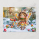 Crocheted Fairy Doll with Snow and Rosehips Holiday Postcard
