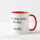 This mug is for a crocheter and states, with a touch of humour, "Crocheting keeps me sane. Usually"