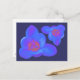This postcard features a photo of a crocus flower that has been digitally altered by adding a filter to produce some bright and beautiful colours. It has shades of blue and purple on the outer petals and shades of red and orange in the centre. The result is a cool flower with a burning hot interior.