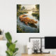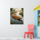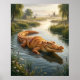 Powerful croissant crocodile artwork featuring a sleek reptile built from buttery pastry layers, flaky laminations, golden baked textures, and caramelised highlights. Gliding through a sunlit river marsh with reflective water, reeds, stone banks, willow trees, drifting mist, birds in flight, and distant windmills, this luxurious fantasy design blends elegance with primal strength. Perfect for kitchens, bakeries, cafés, dining rooms, modern interiors, or collectors of gourmet animal décor.
