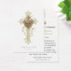 Featuring a beautiful traditional Catholic image a Gold Cross with and overlay of the Immaculate Heart of Mary with pink roses A prayer is also on the back for the bride and groom. All text and fonts can be modified.