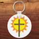A cross set against a bright yellow sun. This design looks really effective on this Keychain