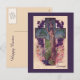 This old-fashioned Easter postcard shows a tree within a cross surrounded by violets, lilies, and the words "Easter Greetings."