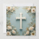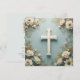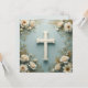 Cross and White Roses Catholic Christening Invitation