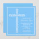 Start your event off right with our trendy blue & white baby baptism / christening invitation. Invitation features a blue background with a fancy white cross.. Easy to customise, just add your event information and you're all set to go.