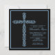 Start your event off right with our trendy black & blue baby baptism / christening invitation. Invitation features a black background with a fancy blue cross.. Easy to customise, just add your event information and you're all set to go.