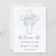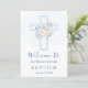 Cross Blue Floral Welcome to Baptism Announcement