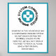 Warning sign to put at your door to warn visitors you won't be opening if they knock or ring the doorbell because someone in your household has a compromised immune system. The warning poster features a white cross with a blue heart.