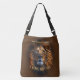 Custom Fun Text, Cross-Body Bag For Her - "I Love My Cat" in gold text on deep vivid brown background with a lion as your cat. Customise this Cross-Body bag with your name your cats name or preferred text and make it unique to yourself. Created for you by Infinity Digital Art, thank you..