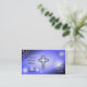 A perfect business card for anyone employed by a church or that volunteers at at church. It features a large silver cross in the middle with a blue background. Your information goes in the spaces around the cross. On the back is a space for a bible passage and the church times. All text is customisable.