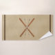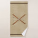 Crossed wooden cross-country skis and ski poles superimposed on an old paper, or parchment, background image.