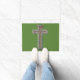 This cross door mat features a green background, providing a clean and simple esthetic that complements various entryways. Its design not only enhances the visual appeal of your home but also serves a practical purpose by keeping dirt and debris at bay. Ideal for both indoor and outdoor use, this mat combines functionality with style, making it a perfect addition to any entrance.