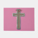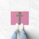 This cross door mat features a pink background, providing a clean and simple esthetic that complements various entryways. Its design not only enhances the visual appeal of your home but also serves a practical purpose by keeping dirt and debris at bay. Ideal for both indoor and outdoor use, this mat combines functionality with style, making it a perfect addition to any entrance.