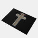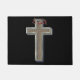 This cross door mat features a black background, providing a clean and simple esthetic that complements various entryways. Its design not only enhances the visual appeal of your home but also serves a practical purpose by keeping dirt and debris at bay. Ideal for both indoor and outdoor use, this mat combines functionality with style, making it a perfect addition to any entrance.