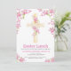 Cross Easter Lunch pink orchid floral Invitation