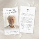 Keep the memory of a loved one close with this custom personalized prayer card featuring one cherished photo, the title FOREVER IN OUR HEARTS, name and dates on the front and an editable prayer accented with a simple cross on the back. With its minimal yet elegant black and white design and modern script typography, it makes a meaningful keepsake to share at a funeral, memorial service or Celebration of Life and offers comfort and a lasting tribute for family and friends. Its small and portable size of 3.5x2" (wallet-sized) makes it convenient for loved ones to carry it with them as a reminder of your loved one’s life and spirit. Personalization makes each card unique.