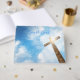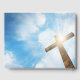 Religious theme guest book is suitable for a variety of occasions. Christian cross in a blue sky with sunlight and white clouds.