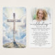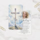 This modern memorial prayer card features a radiant cross set against soft clouds and light, paired with a cherished photo and the comforting words of the Lord’s Prayer. The clean typography and uplifting sky background create a peaceful tribute suitable for a funeral, memorial service or celebration of life, offering faith-centered comfort and remembrance for family and friends. Its small and portable size (3.5x2") makes this keepsake card convenient to carry as a reminder of their life and spirit. Personalization makes these cards unique.
