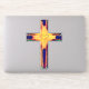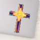 This is my original graphic art of a cross shaped sticker in colourful tones with a small heart in the centre. The sticker is cut out in the cross shape with a thin white border. This sticker is about 8 inches by 8 inches due to the cut-out border, however you may change size to larger or smaller, if desired. The stickers are a quality product that will not leave a sticky goo on your things, and they are printed with inks that won’t fade. Put them on anything you want to personalise and decorate or give as a gift.