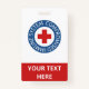 Compromised immune system badge in red, white, and blue with modern fonts and a red cross.