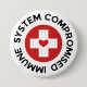 Compromised immune system button in white with a red circle in the middle with a white cross and a red heart.