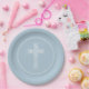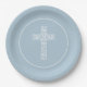 Cross | Steel Blue Communion Baptism Christening Paper Plate
