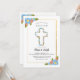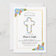 Celebrate your children's religious sacrament with this religious invitation featuring blue, red and yellow flowers and a centre cross. (<a href="https://www.freepik.com/free-photos-vectors/background">Background vector created by freepik - www.freepik.com</a>). The card is easy to customise with your wording, font, font colour and choice of six paper types.<br/><br/>Not exactly what you're looking for? All our products can be custom designed to meet your needs at no extra charge.<br/><br/>Simply contact us at askcottonlamb@gmail.com<br/><br/>Coordinating products available: