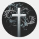 Cross with floral graphics classic round sticker