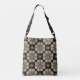 This Crossbody bag features a pattern of tan medallions on a black background.