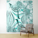 Crossed cyan aqua curved trace on light background tapestry