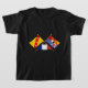 The t-shirt feels and looks great quality, a good thick cotton. It will be a little big for my son, but that means he will be able to wear it and not out grow it too soon. The print was as described on the order when personalised. True size, shape and colour T-shirt- thanks.