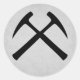 Grey sticker with black crossed rock hammers graphic.
