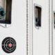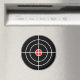 Crosshairs shooting target magnet with red bullseye. Colours can be changed.