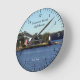 The clock did not take as long to arrive as I thought it might and was extremely well packaged. I didn't do the measurements so I didn't realize it is a little smaller than the average clock but that does not matter (just make sure you check if that's important to you).It is really nifty! It seems very solid and well made not flimsy at all. It has been going well and has kept good time in its few weeks on my wall. Nice product. Gets noticed too! Nicer in real life than the picture but true to the picture