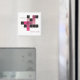 It was a bit smaller than expected, but I was too excited to check dimensions. The product itself send well printed though the grey text is a bit paint. Magnet worked perfectly on my fridge.