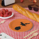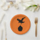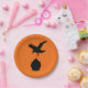 Fun plates with the silhouettes of a crow dive bombing a cupcake. Fun for a Halloween baby shower or the goth mum-to-be.