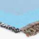A quality printed throw has its advantages. This is a much finer weave throw than its loopier cousins, and though lighter, it is worth the investment for custom room accessorizing. The back is much prettier than the typical brown, and the fringe on the long sides very vivid, the selvage nicely done. Before photographing, I washed the throw in cold water, delicate, with a thicker woven throw the same size. On tumble dry low, this throw was dry in half the time as the other. This is a very practical quality if you use throws for furniture covers or to wrap up in frequently. The sleekness of the fabric makes it a great layer for accenting or protecting without the feeling of sitting on too much stuff. Perfect for napping or when you feel a light chill coming on. The color printing is beautiful and on this fabric, matched the design and color of my Photoshop image. This is an advantage for blending room fabrics and colors. The fringe on the short sides prints the colors from the design image and therefore varies from the side fringe. I streaked a white fractal line through the plaid pattern to give the illusion of weaving. This printed as crisp as an illusory thread, and put some white in the short side fringe, showing another advantage of print vs loomed- for artistic purposes, line lines, detail, and color integrity can be planned and preserved. My loomed throws have color limitations and more of a needlepoint texture. Print throws reproduce an exact image. The throw felt a little stiff straight out of the package, but this went away in the first delicate wash. Of course I searched the wash water for ink or bleeding and there was none.