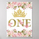 Faux Gold Glitter Look Crown and Butterflies Floral "ONE" high chair sign.