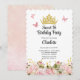 Crown | Butterflies Pink Floral Sweet 16 Birthday Invitation