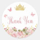 Crown | Butterflies Pink Floral Thank You Classic Round Sticker