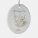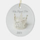 Christmas ceramic ornament is shown in a round shape with a lovely silver crystal and pearl crown photo print.