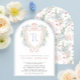 This charming baby shower invitation exudes regal elegance with a modern twist, featuring a beautifully illustrated crown crest monogram, which is both sophisticated and endearing. The soft watercolor florals in delicate shades of pink and blue evoke a sense of gentle warmth and joy, perfectly capturing the essence of a new beginning. The ornate crest, framing the baby’s initial, adds a touch of timeless grace, creating a memorable statement for your special event.