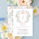 Invite loved ones to celebrate the upcoming arrival with our Crown Crest Monogram Pink Blue Baby Shower Invitation. This stunning invitation features a soft watercolor design, embodying a modern yet vintage aesthetic. At its heart, a beautifully hand-drawn crest is adorned with a crown, delicate bows, and is festooned with lush greenery and flowers, creating an air of timeless elegance. The monogram is hand painted for each letter, and can easily be changed (see video).