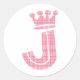CROWN INITIAL PINK J CLASSIC ROUND STICKER