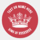 Fun crown sticker with any text above and below to designate a king or queen for event or humour.