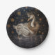 Welcome to my collection of all-purpose Stationery designed to bring a touch of vintage charm to every occasion. Whether you're planning a birthday party, a wedding or hosting a garden party, these charming round plates - inspired by antique oil paintings - will add a dash of elegance to your event. This design depicts an elegant swan 🦢 adorned with a luxurious, embellished ruffle collar accented with pearls, gracefully wearing a regal crown. The swan is set against a starry night backdrop, adding a sense of wonder and enchantment. It floats gently on glittering water, contributing to a serene and tranquil ambiance. The artwork masterfully blends elements of a vintage esthetic with contemporary oil painting techniques, creating a rich tapestry of brushstrokes that add depth and dimension to the scene. The meticulous detailing highlights the intricate textures and delicate features, enhancing the visual experience and inviting viewers to immerse themselves in the tranquil beauty of the moment.