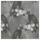 This Gothic-inspired design showcases black birds with silver crowns sitting on black and white flowers on a grey background.