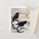 American crows sitting on a gnarled branch on a wintry day in a vintage illustration from a 1922 bird book.