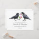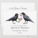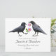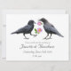 A pair of crows each hold a pink wild rose on these unique wedding invitations. Click customize to add your own words.